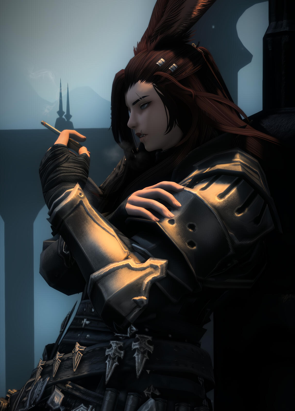 With fifty years under her belt pertaining to the study of aether alone, this Viera has learned the ins and outs of how to properly manipulate and control it, bending it to her whims.The time devoted to this took a toll on her social interaction, though, in the past few turns, she has gained a rather high notoriety among individuals she has met. Her work with aether expands far beyond the normal art of casting and being able to use it for combat or even healing. She has taken the time to strip the force down to its most natural state, using it a way that perhaps has caused irreversible effects. However, if she is not properly asked about such, it would all just be speculation, wouldn't it?Some say she is an ink mage, the black veins that trail just under her skin giving her away with just one look. Though some claim she is of the void, she will correct them in almost an instant. Though, while she has taken the time to try and suppress her aether signature to others, it is still wildly present to most, something she has had to worry about up till recently. Confidence blooming as moos past, working on herself to actually step into a potential she was hindering herself from for years with the help of the family she has madeHer intentions are good, at least to her. The mindset of helping people in any way she can plays a bit part in how she carries herself while also thriving in the roots she planted deep within the underground through information. Every good has a bad, but she tried her best to void them out any way she can if she has to. She is not one to judge someone on their past, viewing it as to what makes a person themselves and will turn a blind eye to anything most would find troubling. Always a welcome hand to help someone who is in need of it, giving that trust until it is broken.The Viera has dedicated her life to her work and would be glad to talk to someone about it if they are interested, but it might just be more then someone can chew...